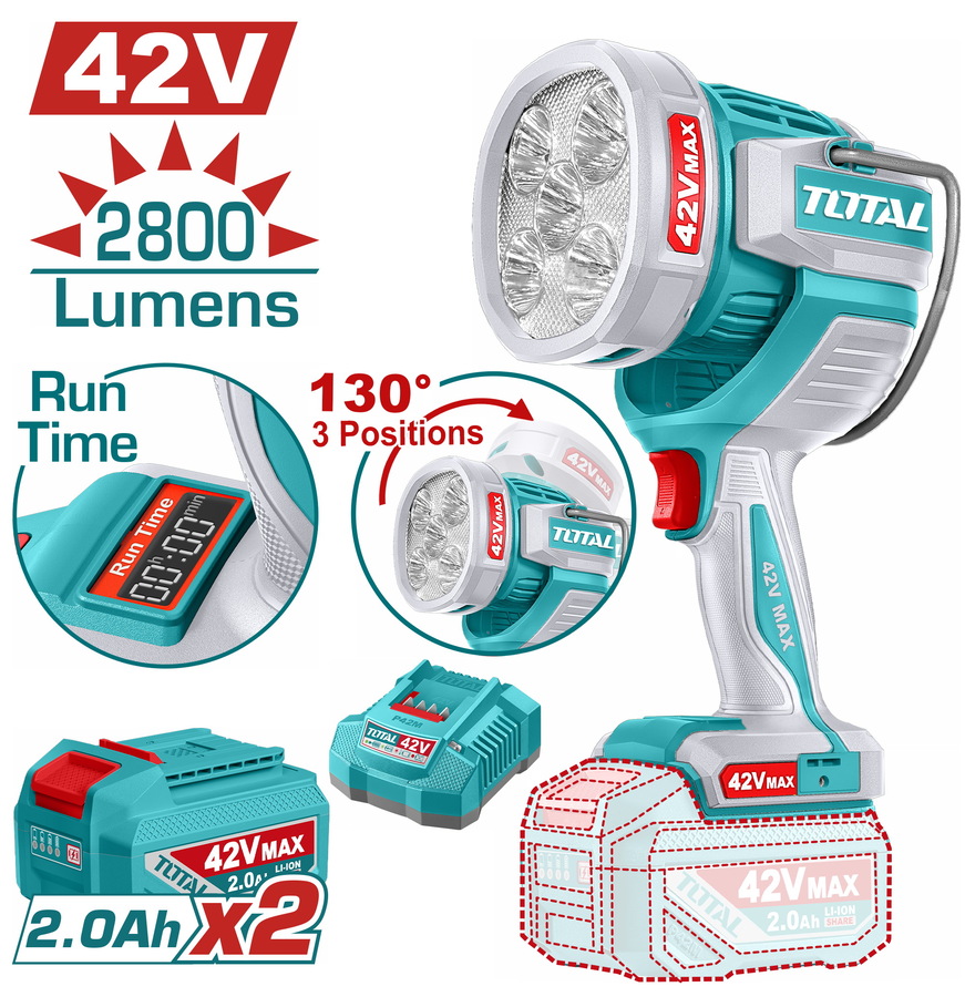 TOTAL ΕΠΑΓΓ. ΠΡΟΒΟΛΕΑΣ LED ΜΠΑΤ. Li-ion 42V / 50W / 2Ah / 2 ΜΠΑΤ (TWLI42896E)