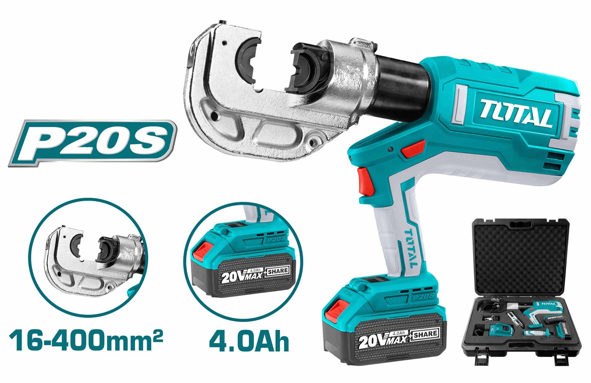 TOTAL ΕΠΑΓΓΕΛΜΑΤΙΚΗ ΥΔΡΑΥΛΙΚΗ ΠΡΕΣΑ ΚΑΛΩΔΙΩΝ ΜΠΑΤ. Li-ion 20V / 4Ah / 2 ΜΠΑΤΑΡΙΕΣ (TCTLI2002)