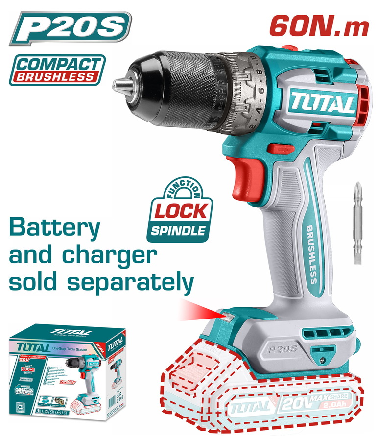 TOTAL ΕΠΑΓΓ. ΔΡΑΠΑΝΟΚΑΤΣΑΒΙΔΟ ΜΠΑΤ. Li-ion 20V / 60Nm BL Motor ΧΩΡΙΣ ΜΠΑΤΑΡΙΑ & ΦΟΡΤΙΣΤΗ (TDLI206021)