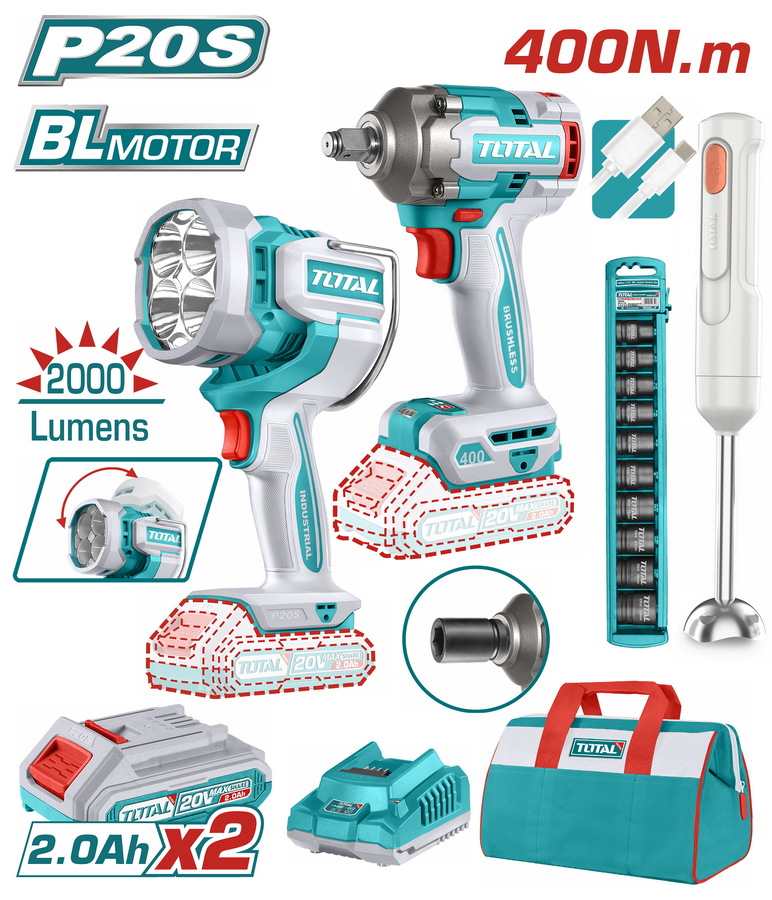TOTAL ΕΠΑΓΓ. ΣΕΤ ΜΠΟΥΛΟΝΟΚΛΕΙΔΟ + ΠΡΟΒΟΛΕΑΣ ΜΠΑΤ. Li-ion 20V / 2Ah / 2 ΜΠΑΤ (TOSLI240961E)