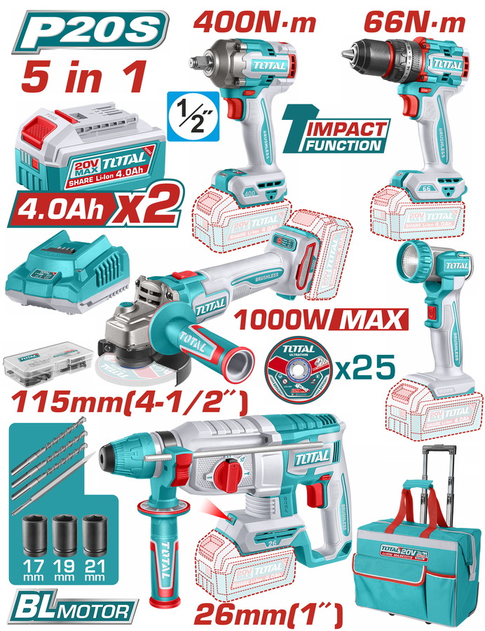 TOTAL ΕΠΑΓΓ. ΣΕΤ 5τεμ ΕΡΓΑΛΕΙΩΝ ΜΠΑΤ. Li-ion 20V / 4Ah / 2 ΜΠΑΤΑΡΙΕΣ (TCKLI20592E)