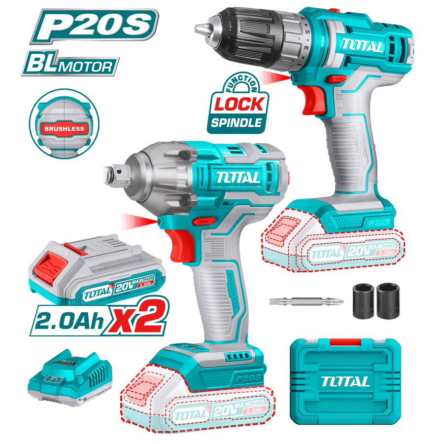 TOTAL ΣΕΤ ΔΡΑΠΑΝΟΚΑΤΣΑΒΙΔΟ + ΜΠΟΥΛΟΝΟΚΛΕΙΔΟ ΜΠΑΤ. Li-ion 20V / 2Ah / 2 ΜΠΑΤ (TOSLI230702)