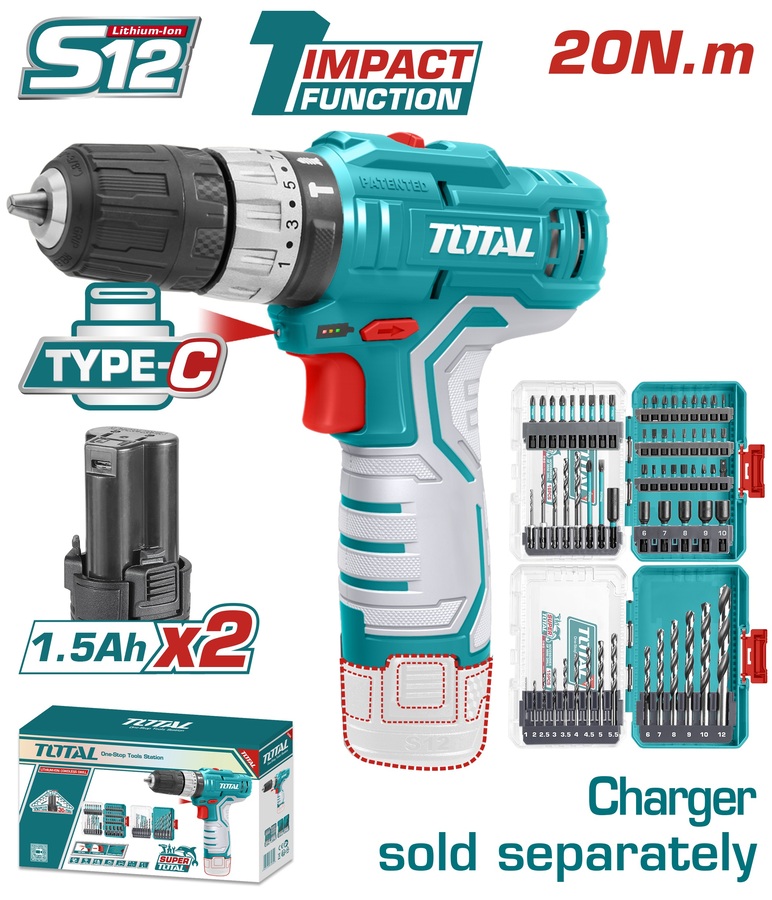 WF TOTAL ΕΠΑΓΓ. ΔΡΑΠ/ΒΙΔΟ ΚΡΟΥΣΤΙΚΟ ΜΠΑΤ. Li-ion 12V / 1.5Ah / 20Nm / 2 ΜΠΑΤ Type-C (TOSLI241197E)